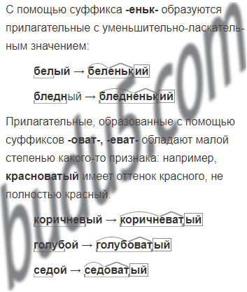 Прилагательные с каким значением образовались с помощью суффиксов -еньк-, -оват-, -еват-? Разбери эти слова по составу.