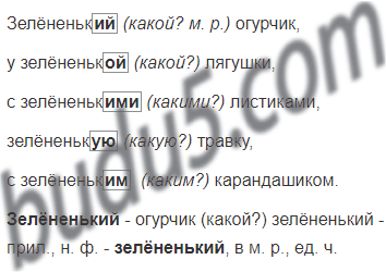 Зелёненьк_ огурчик, у зелёненьк_ лягушки, с зелёненьк_ листиками, зелёненьк_ травку, с зелёненьк_ карандашиком.