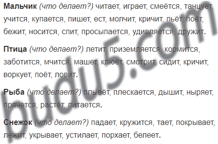 Образец записи: камень (что делает?) лежит, падает, катится, летит, загораживает, разбивается...
