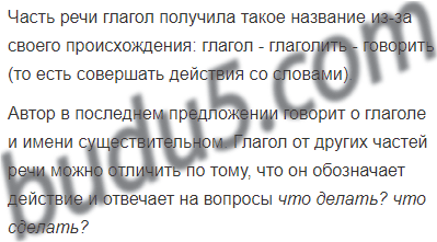 О каких двух частях речи говорит автор в последнем предложении? Как отличить глагол от других частей речи?