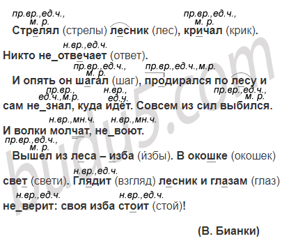 Надпиши над каждым глаголом время, число и род (если есть). Найди в тексте однокоренные слова, выдели корень.