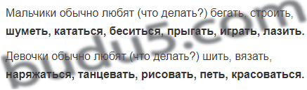 Продолжи запись: перечисли, что обычно любят делать мальчики и девочки.