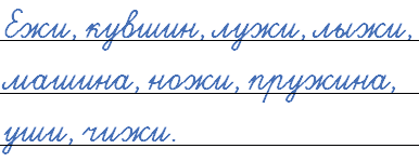 Лужи, лыжи, уши, кувшин, ежи, ножи, чижи, пружина, машина.