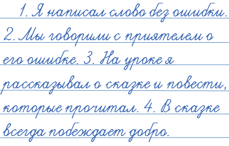 1. Я написал слово без ошибке. 2. Мы говорили с приятелем о его ошибки. 3. На уроке я рассказывал о сказке и повесте, которые прочитал. 4. В сказки всегда побеждает добро.