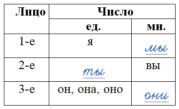 Заполните пустые клеточки в таблице нужными местоимениями.