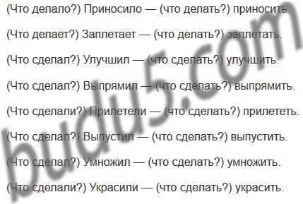 Образец. (Что делало?) Приносило — (что делать?) приносить. (Что делает?) Заплетает — ... .