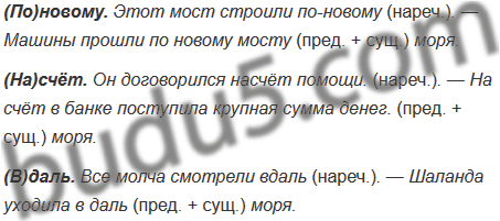 (По)новому, (на)счёт, (в)даль.