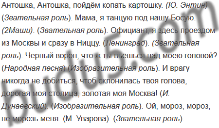 Из текстов старинных и современных русских песен, которые вы знаете, выпишите предложения с обращениями. Определите, какую роль (звательную, изобразительную, оценочную) выполняет обращение в каждом случае.
