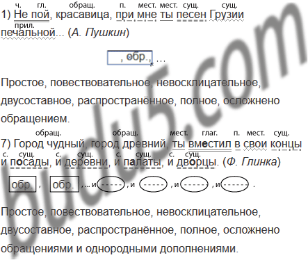 Используя образец синтаксического разбора простого предложения, осложнённого обращением, выполните синтаксический разбор первого и седьмого предложения упр. 232.