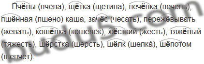 Пч..лы, щ..тка, печ..нка, пш..нная (каша), зач..с, переж..вывать, кош..лка, ж..сткий, тяж..лый, ш..рстка, ш..лк, ш..потом.
