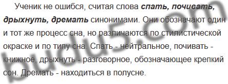 Один ученик составил такой синонимический ряд: спать, почивать, дрыхнуть, дремать.