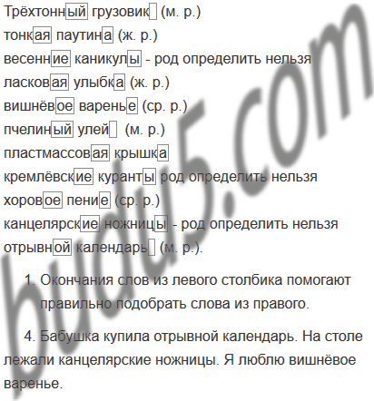 1. Помогают ли окончания слов из левого столбика правильно найти слова из правого столбика?
