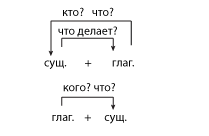 Какая схема изображает связь слов в словосочетании, какая — связь между подлежащим и сказуемым?