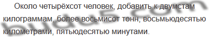 Около 400 человек, добавить к 200 кг, более 800 80 километрами, 50 минутами.