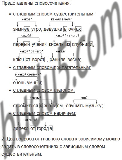 2. В каких словосочетаниях от главного слова к зависимому можно задать два вопроса?