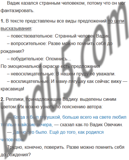 2. Прочитайте ещё раз разговор между автором текста и Вадиком. Какие реплики (слова лица, участвующего в разговоре) принадлежат автору текста, какие — Вадику? Как вы это узнали?