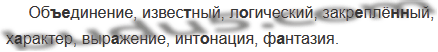 Об(?)..динение, извес(?)ный, л..гческий, закр..плё(н, нн)ый, х..рактер, выр..жение, инт..нация, ф..нтазия.