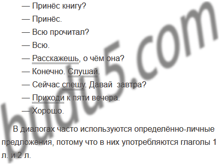 Запишите составленный диалог. Подчеркните грамматические основы определённо-личных предложений, обозначьте грамматические признаки глаголов-сказуемых. Как вы думаете, почему в диалогах часто используются определённо-личные предложения?