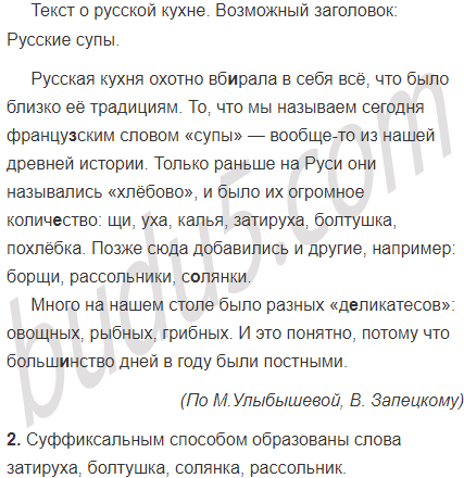 2. Найдите в тексте слова, обозначающие блюда русской кухни и образованные одним способом.