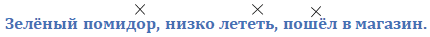 Синий (прил.) шар (сущ.), весело (нар.) играть (гл.), пришёл (гл.) из (пр.) школы (сущ.).