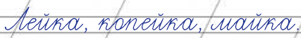 Зайка, мойка, стройка, гайка, майка, копейка, лейка, тройка, сойка, лайка.