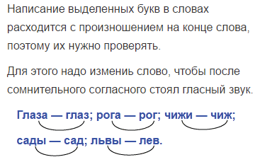 Написание выделенных букв расходится с их произношением, когда буквы стоят на конце слова.